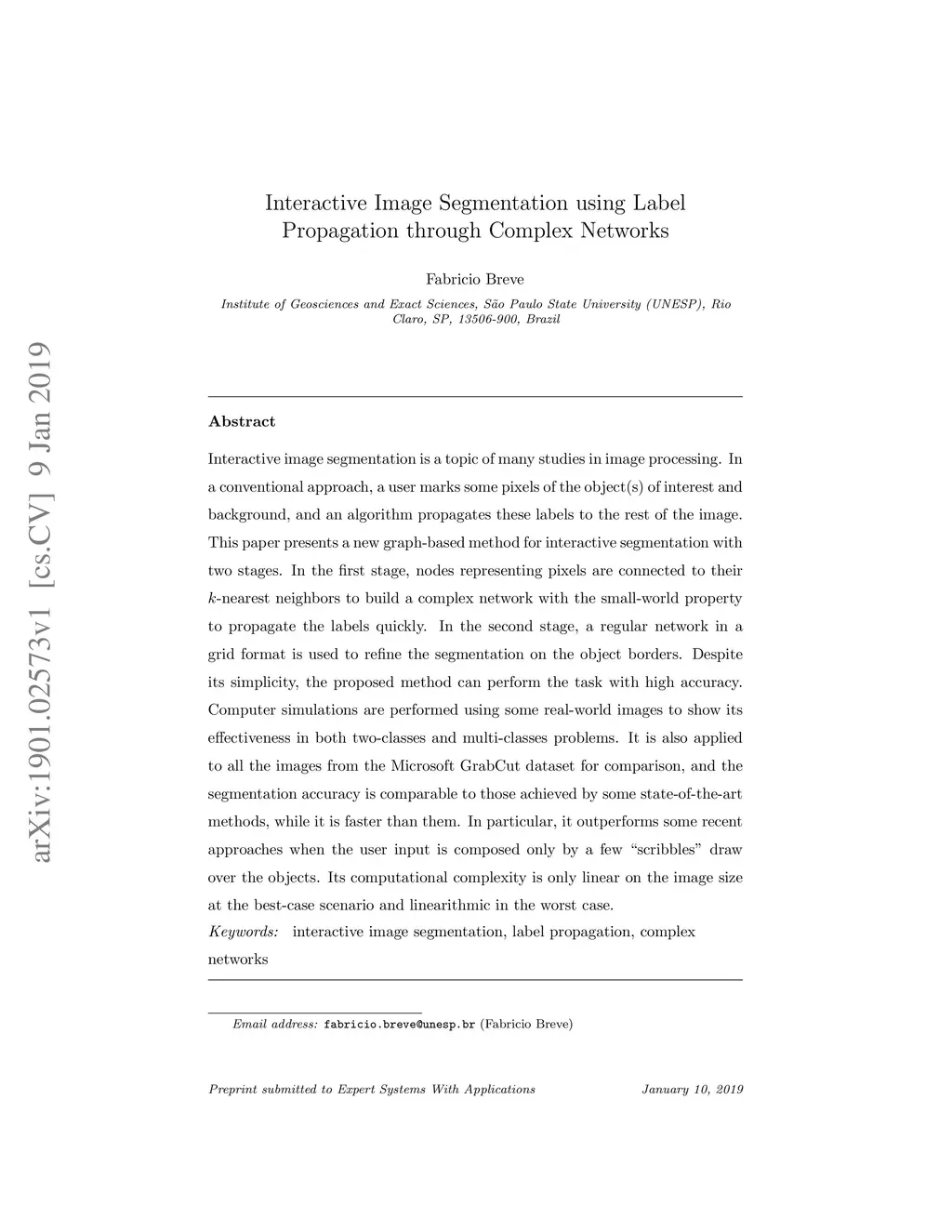 Interactive Image Segmentation using Label Propagation through Complex