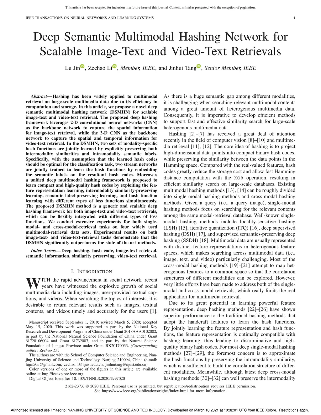 Deep Semantic Multimodal Hashing Network for Scalable Image-Text and
