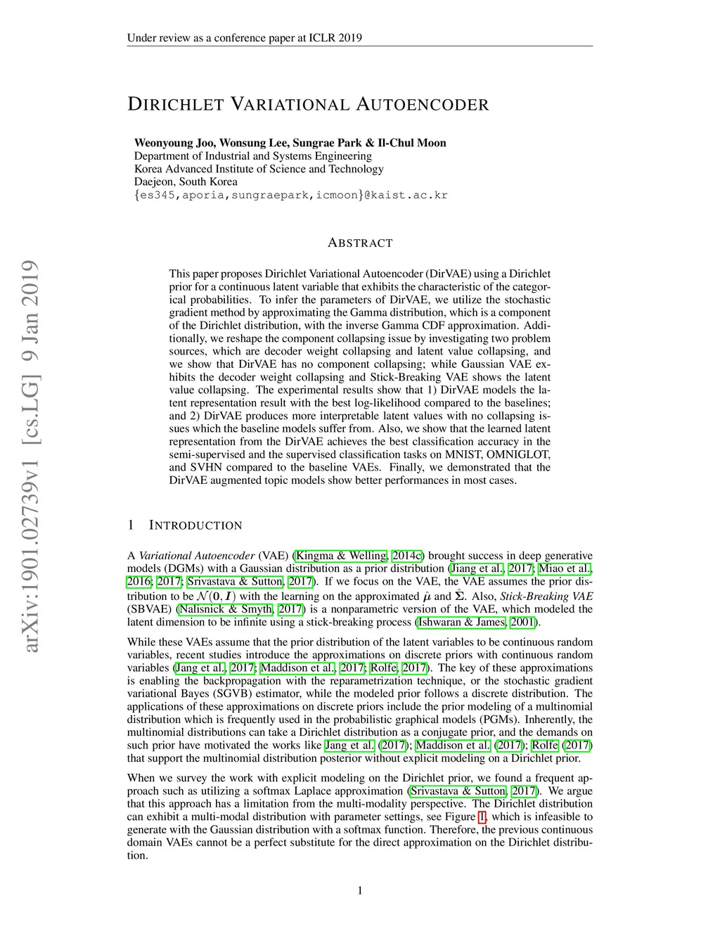 Dirichlet Variational Autoencoder