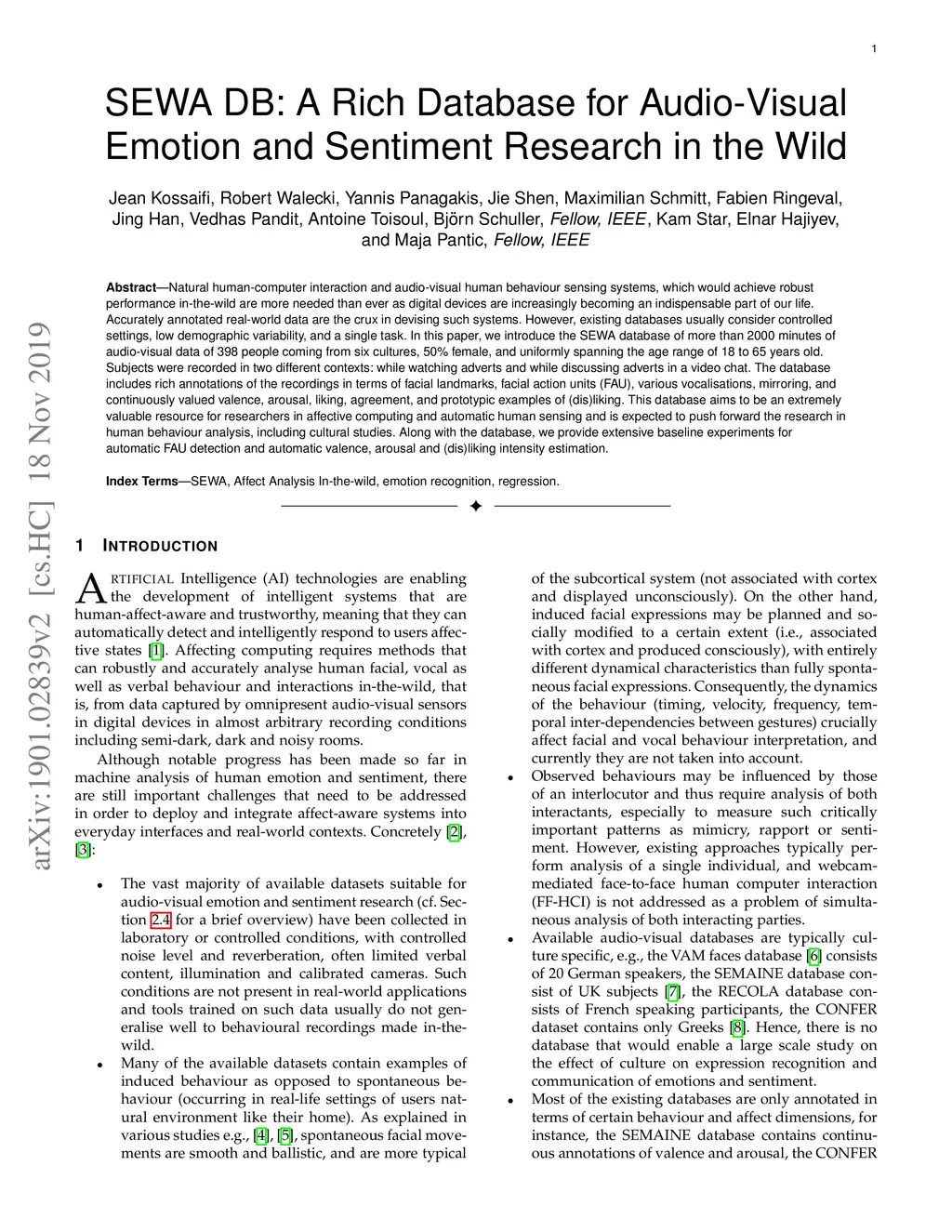 SEWA DB: A Rich Database for Audio-Visual Emotion and Sentiment Research