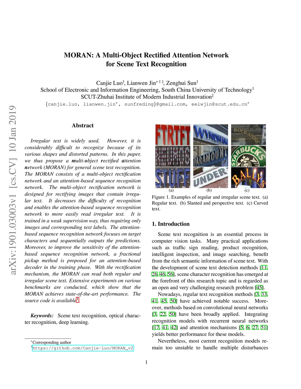 A Multi-Object Rectified Attention Network for Scene Text Recognition