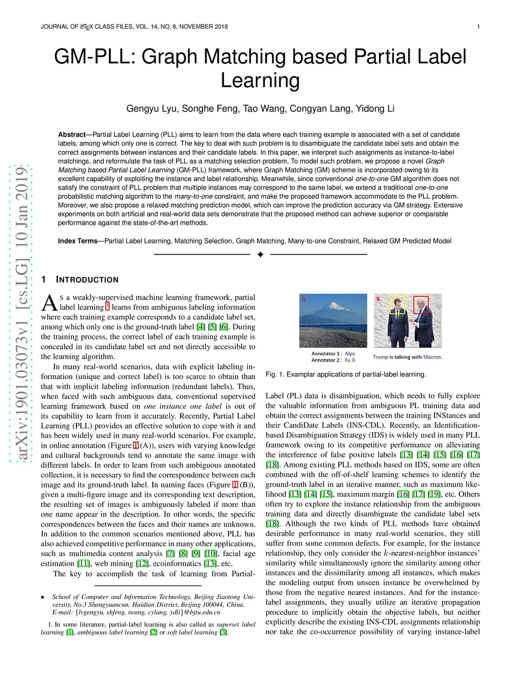Partial Label Learning (PLL) aims to learn from the data where each training example is associated with a set of candidate labels, among which only one is correct. The key to deal with such problem is to disambiguate the candidate label sets and obtain the correct assignments between instances and their candidate labels. In this paper, we interpret such assignments as instance-to-label matchings, and reformulate the task of PLL as a matching selection problem. To model such problem, we propose a novel Graph Matching based Partial Label Learning (GM-PLL) framework, where Graph Matching (GM) scheme is incorporated owing to its excellent capability of exploiting the instance and label relationship. Meanwhile, since conventional one-to-one GM algorithm does not satisfy the constraint of PLL problem that multiple instances may correspond to the same label, we extend a traditional one-to-one probabilistic matching algorithm to the many-to-one constraint, and make the proposed framework accommodate to the PLL problem. Moreover, we also propose a relaxed matching prediction model, which can improve the prediction accuracy via GM strategy. Extensive experiments on both artificial and real-world data sets demonstrate that the proposed method can achieve superior or comparable performance against the state-of-the-art methods.