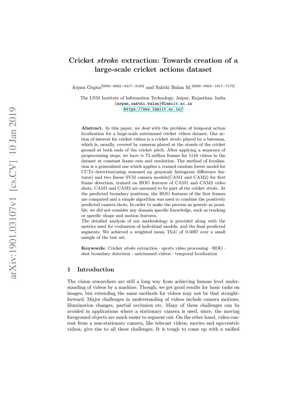 Cricket stroke extraction: Towards creation of a large-scale cricket