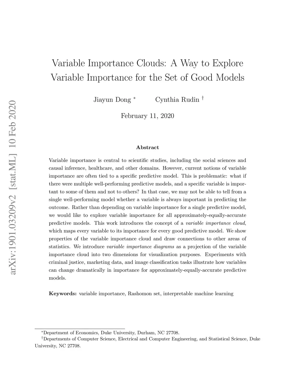 Variable importance is central to scientific studies, including the social sciences and causal inference, healthcare, and in other domains. However, current notions of variable importance are often tied to a specific predictive model. This is problematic: what if there were multiple well-performing predictive models, and a specific variable is important to some of them and not to others? In that case, we may not be able to tell from a single well-performing model whether a variable is always important in predicting the outcome. Rather than depending on variable importance for a single predictive model, we would like to explore variable importance for all approximately-equally-accurate predictive models. This work introduces the concept of a variable importance cloud, which maps every variable to its importance for every good predictive model. We show properties of the variable importance cloud and draw connections other areas of statistics. We introduce variable importance diagrams as a projection of the variable importance cloud into two dimensions for visualization purposes. Experiments with criminal justice and marketing data illustrate how variables can change dramatically in importance for approximately-equally-accurate predictive models.