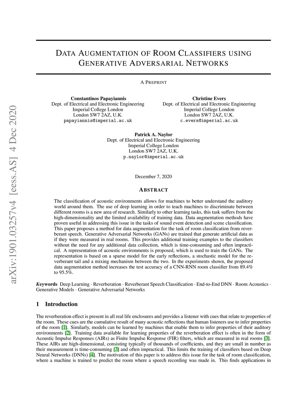 Data Augmentation of Room Classifiers using Generative Adversarial