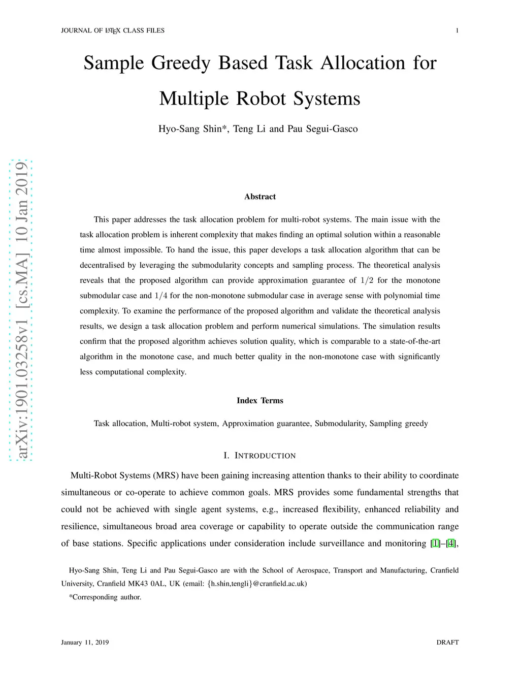 Sample Greedy Based Task Allocation for Multiple Robot Systems
