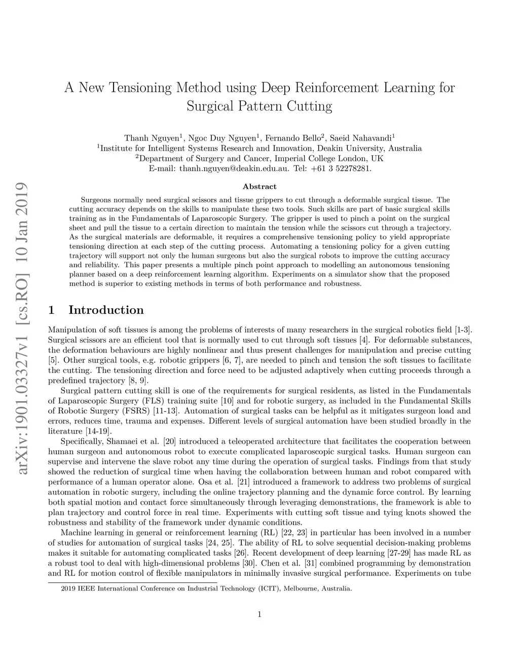 A New Tensioning Method using Deep Reinforcement Learning for Surgical