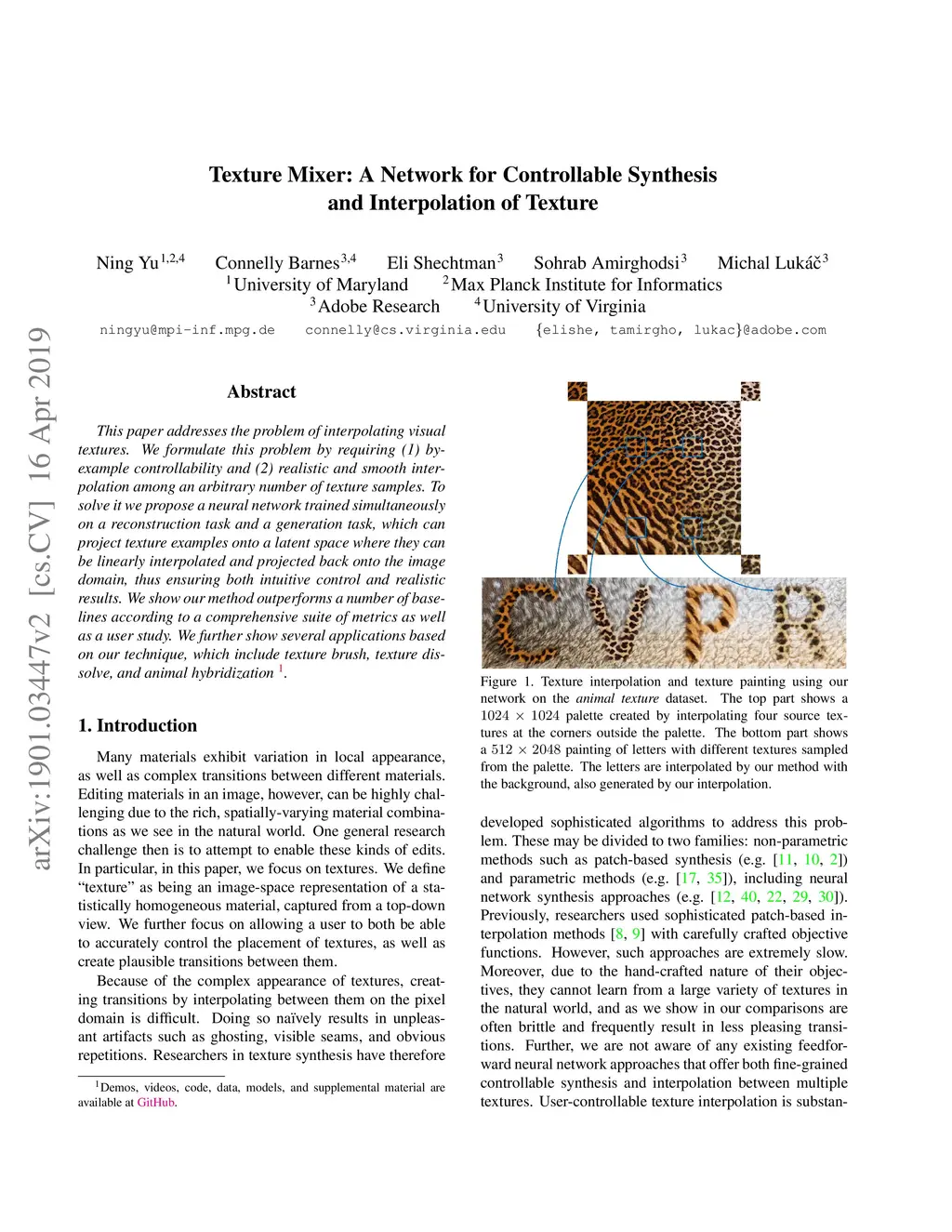 Texture Mixer: A Network for Controllable Synthesis and Interpolation of