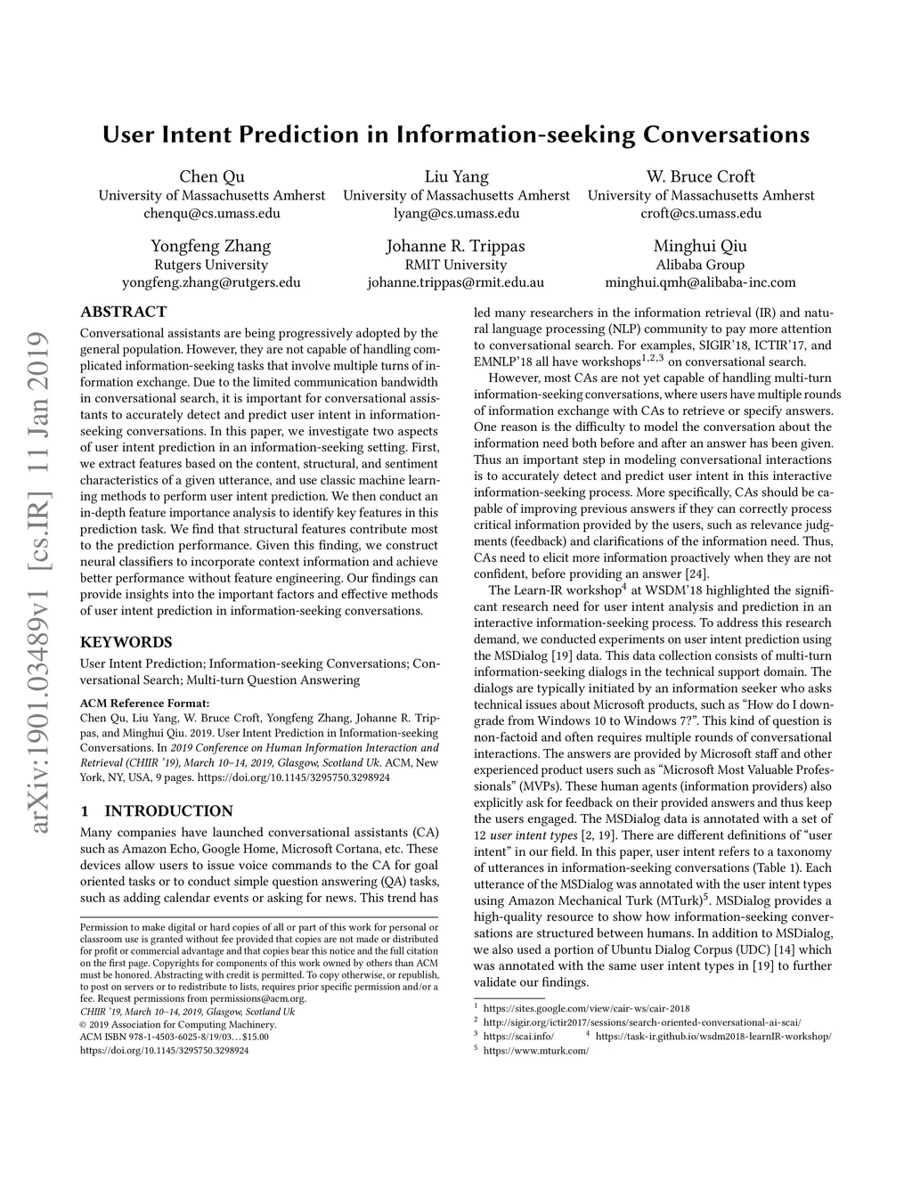 User Intent Prediction in Information-seeking Conversations