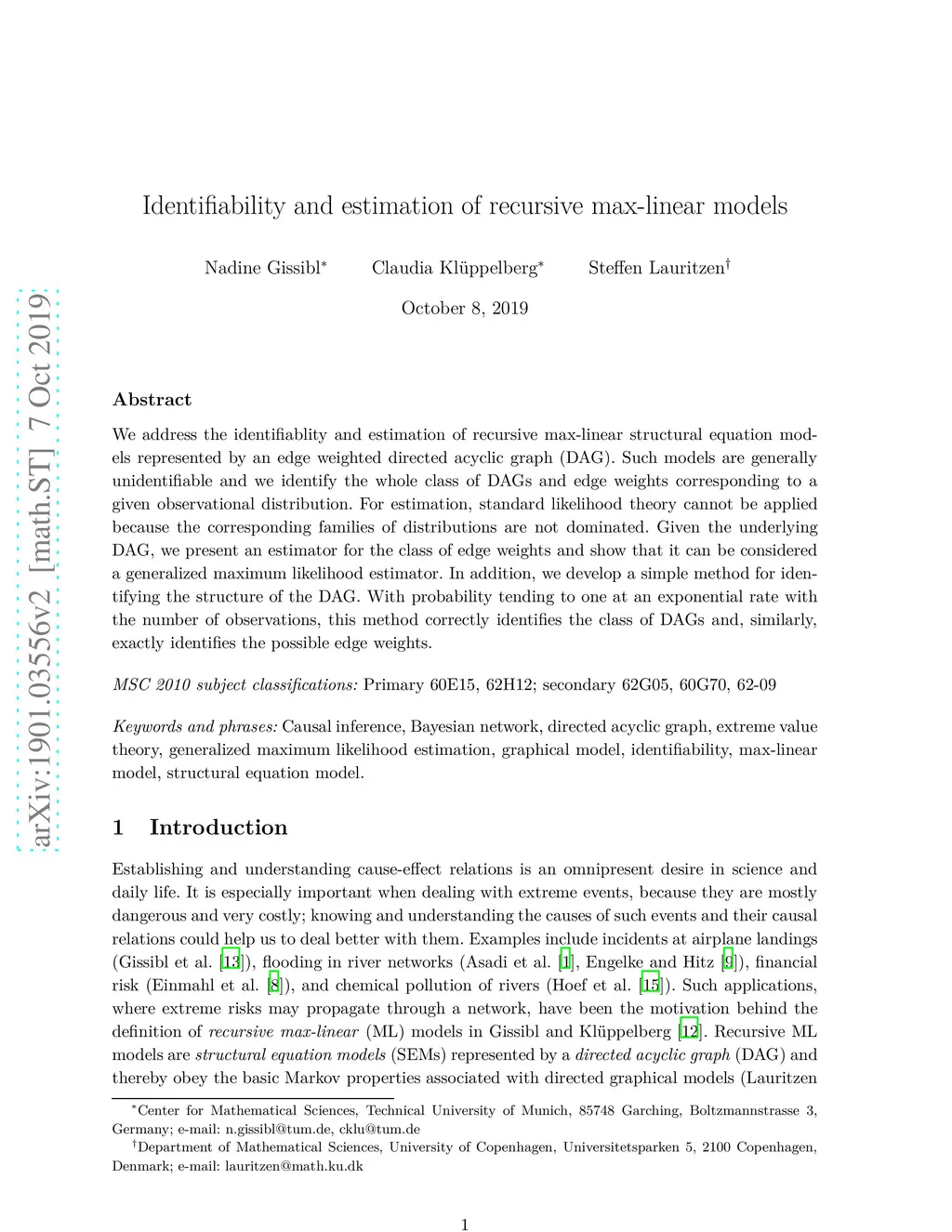 We address the identifiablity and estimation of recursive max-linear structural equation models represented by an edge weighted directed acyclic graph (DAG). Such models are generally unidentifiable and we identify the whole class of DAGs and edge weights corresponding to a given observational distribution. For estimation, standard likelihood theory cannot be applied because the corresponding families of distributions are not dominated. Given the underlying DAG, we present an estimator for the class of edge weights and show that it can be considered a generalized maximum likelihood estimator. In addition, we develop a simple method for identifying the structures of the DAGs. With probability tending to one at an exponential rate with the number of observations, this method correctly identifies the class of DAGs and, similarly, exactly identifies the possible edge weights.