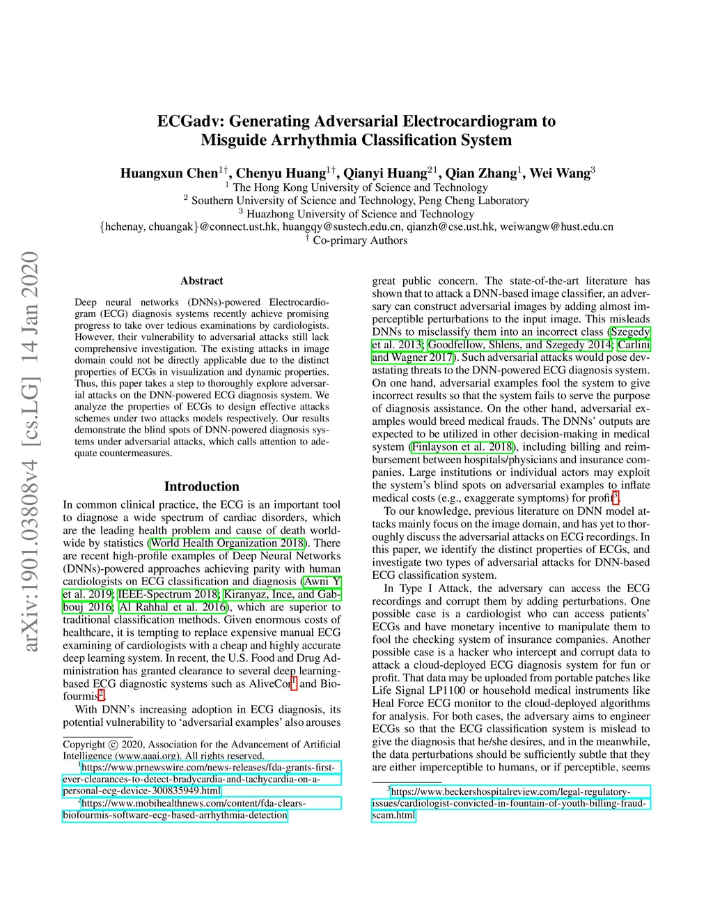 ECGadv: Generating Adversarial Electrocardiogram to Misguide Arrhythmia