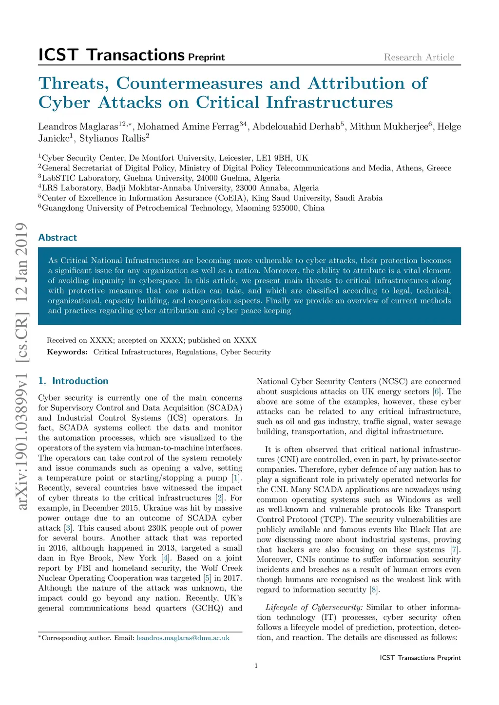 Threats, Protection and Attribution of Cyber Attacks on Critical