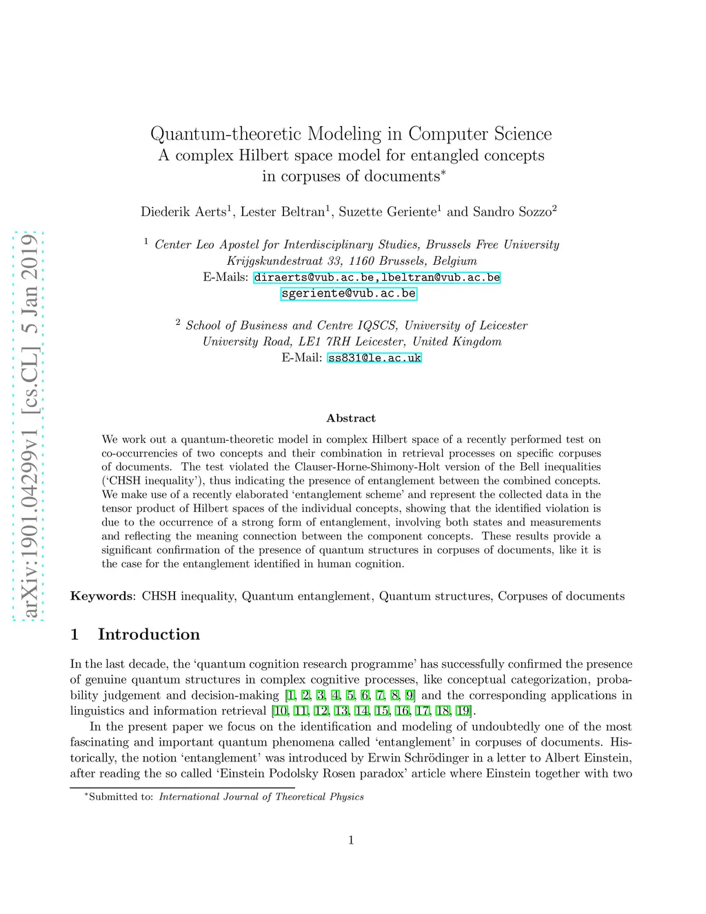 Quantum-theoretic Modeling in Computer Science A complex Hilbert space