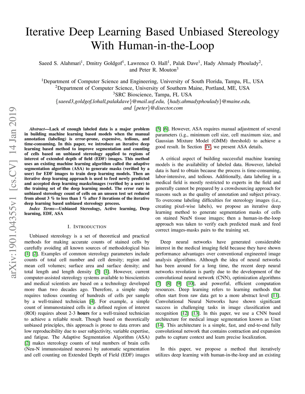 Iterative Deep Learning Based Unbiased Stereology With Human-in-the-Loop