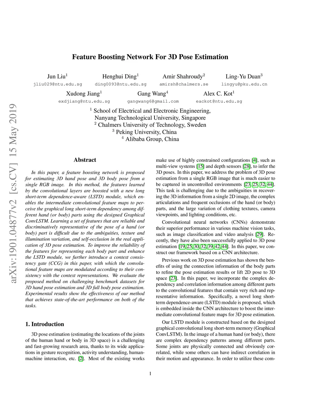 Feature Boosting Network For 3D Pose Estimation