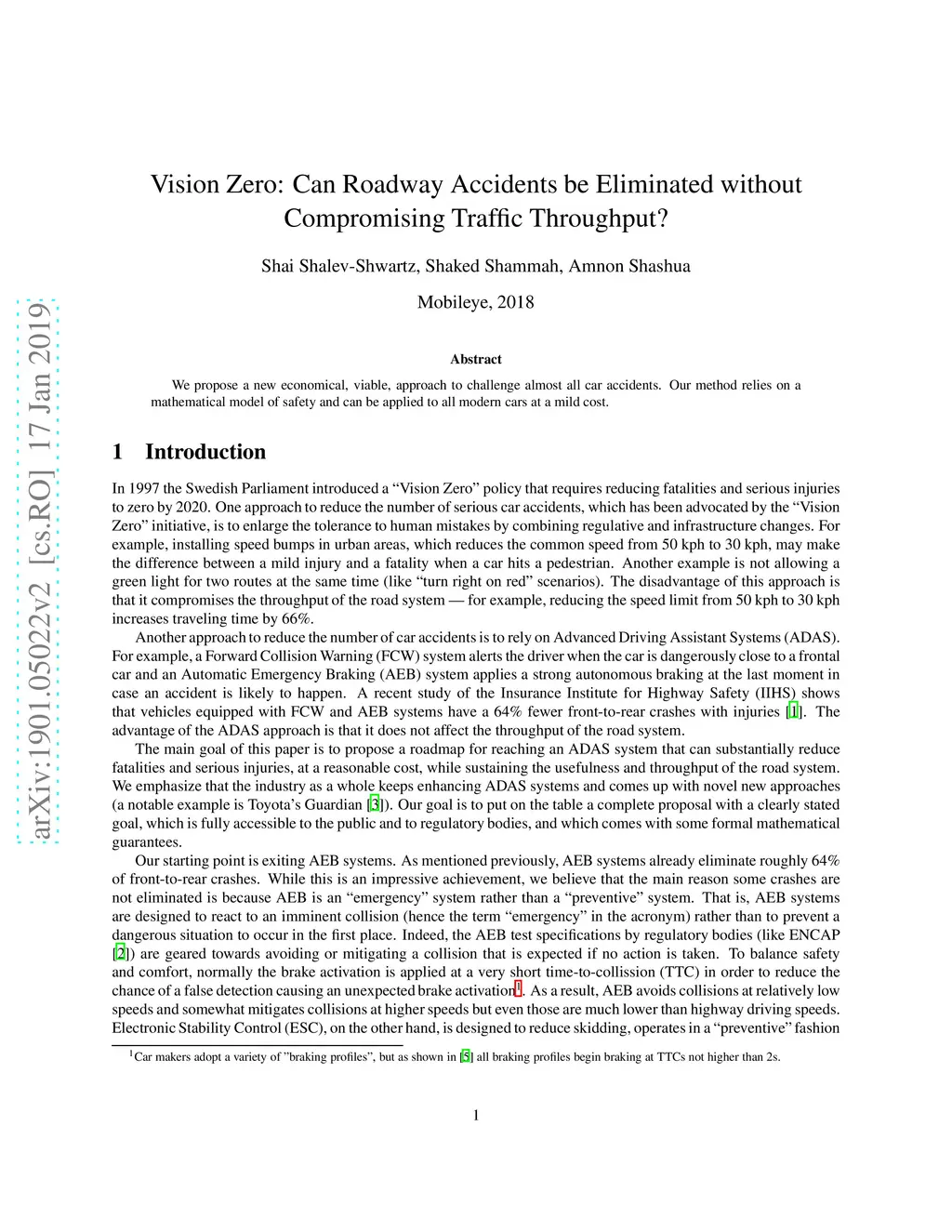 Vision Zero: on a Provable Method for Eliminating Roadway Accidents