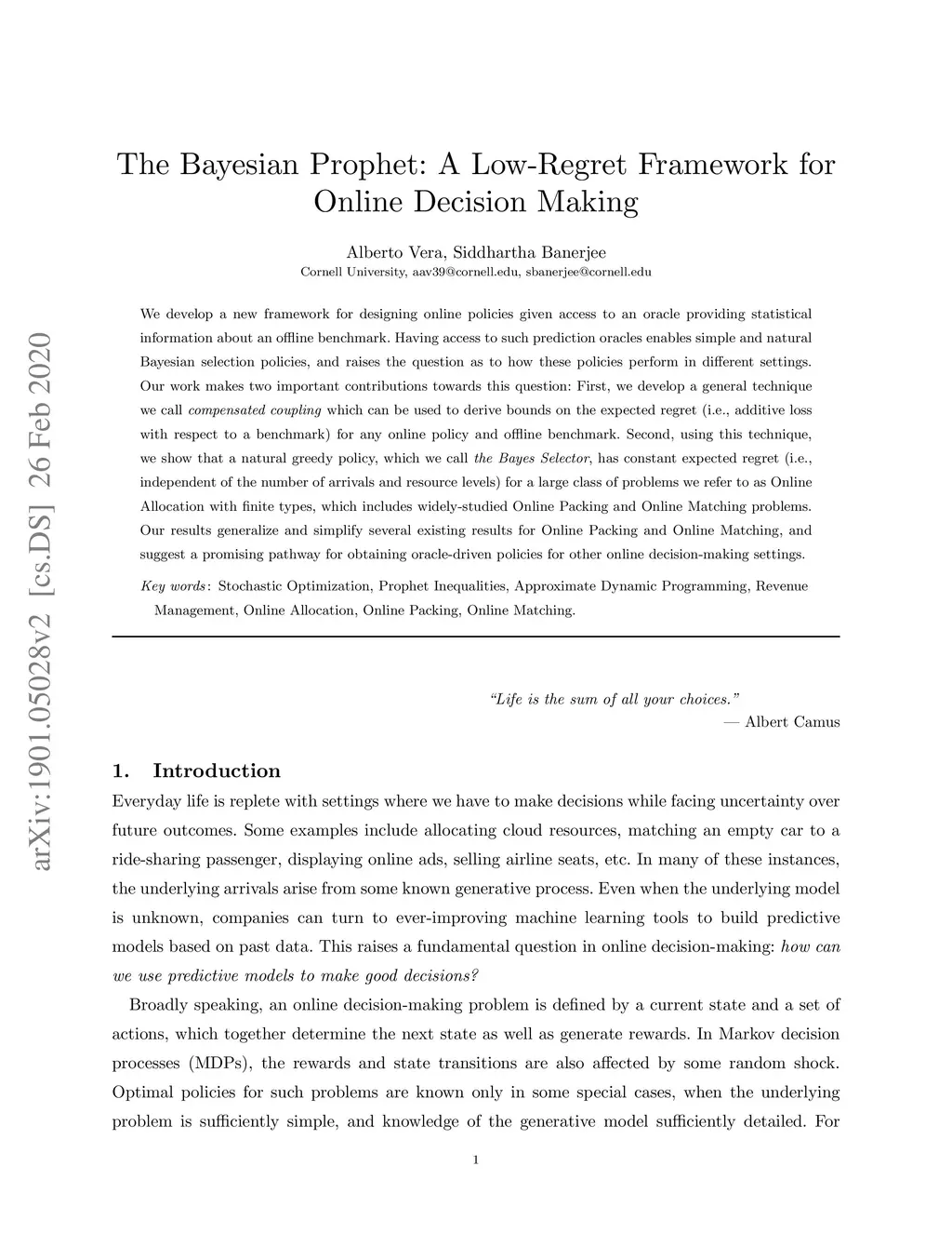 The Bayesian Prophet: A Low-Regret Framework for Online Decision Making