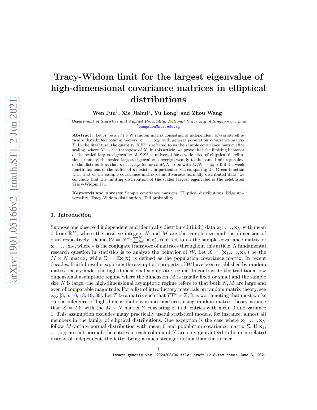 covariance matrices in elliptical distributions