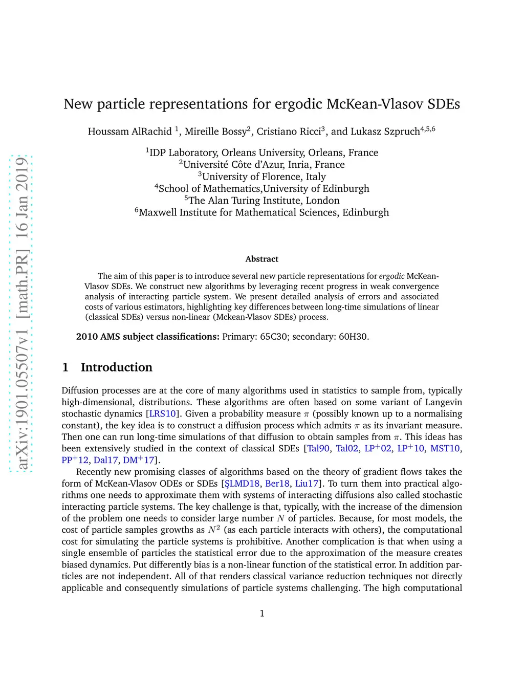 The aim of this paper is to introduce several new particle representations for \textit{ergodic} McKean-Vlasov SDEs. We construct new algorithms by leveraging recent progress in weak convergence analysis of interacting particle system. We present detailed analysis of errors and associated costs of various estimators, highlighting key differences between long-time simulations of linear (classical SDEs) versus non-linear (Mckean-Vlasov SDEs) process.