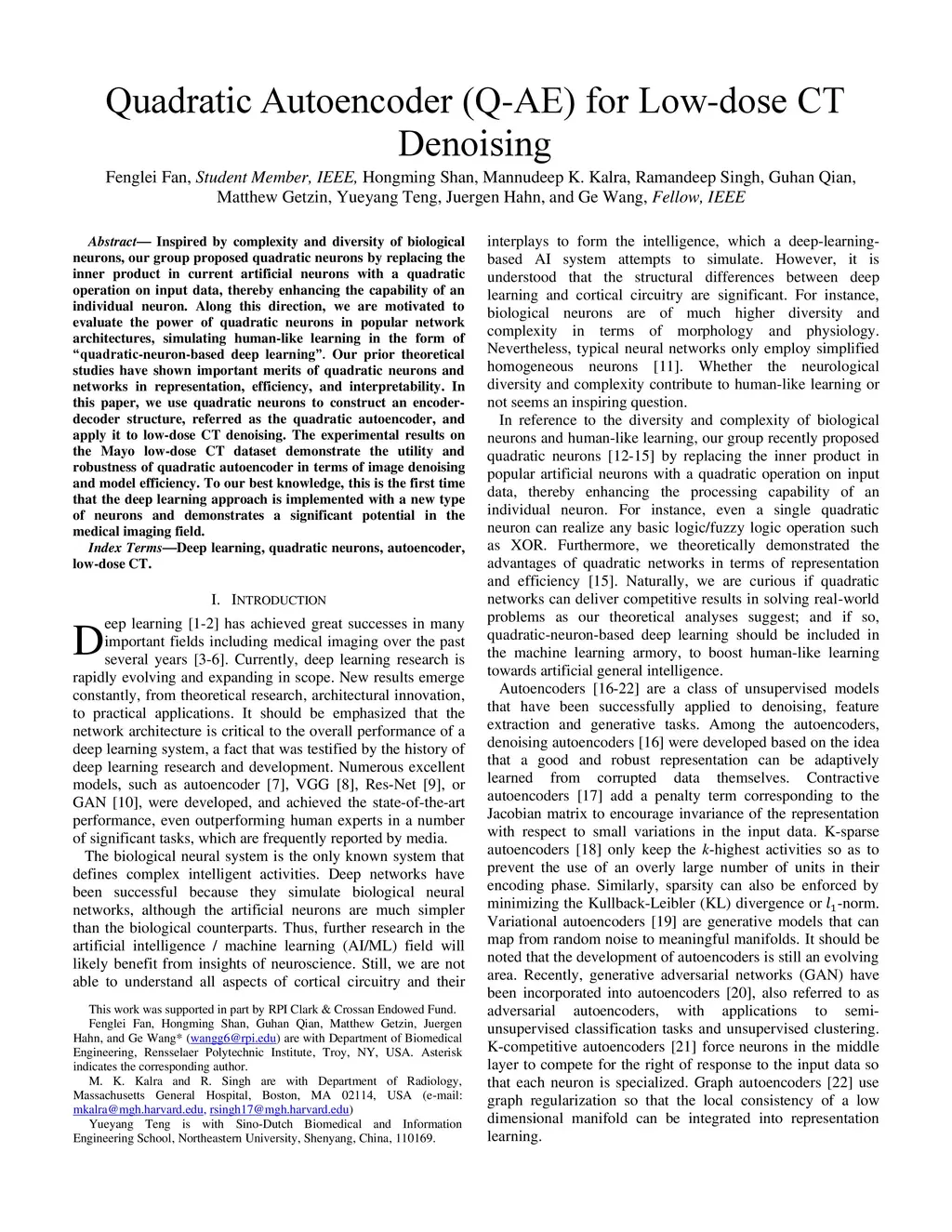 Quadratic Autoencoder (Q-AE) for Low-dose CT Denoising
