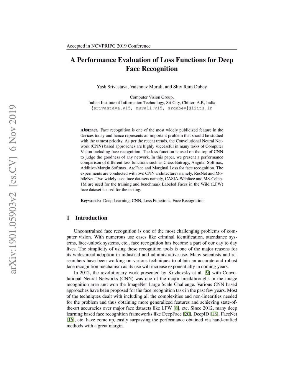 A Performance Comparison of Loss Functions for Deep Face Recognition