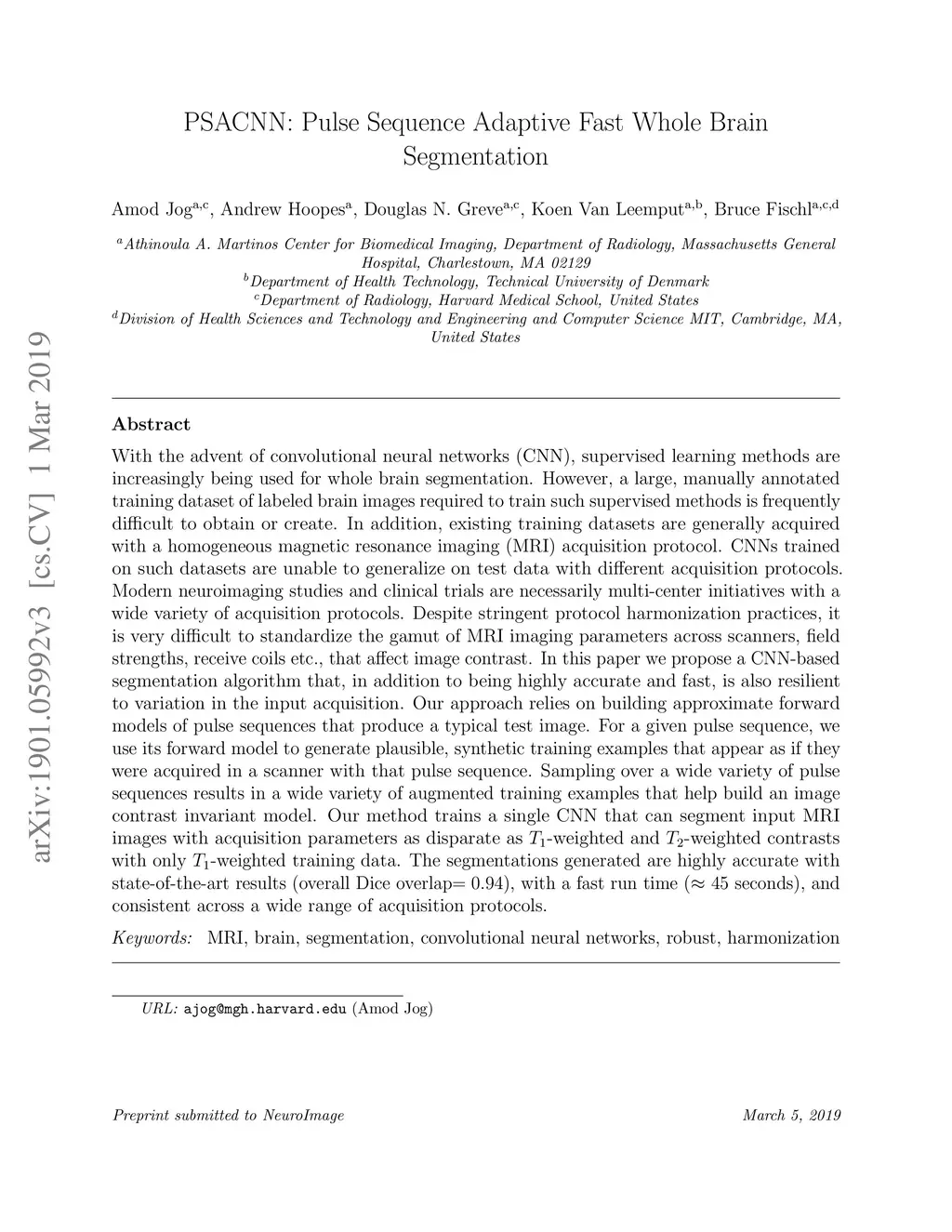 PSACNN: Pulse Sequence Adaptive Fast Whole Brain Segmentation