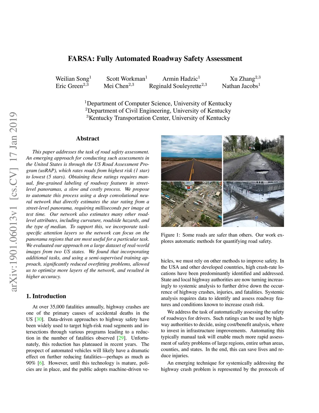 This paper addresses the task of road safety assessment. An emerging approach for conducting such assessments in the United States is through the US Road Assessment Program (usRAP), which rates roads from highest risk (1 star) to lowest (5 stars). Obtaining these ratings requires manual, fine-grained labeling of roadway features in street-level panoramas, a slow and costly process. We propose to automate this process using a deep convolutional neural network that directly estimates the star rating from a street-level panorama, requiring milliseconds per image at test time. Our network also estimates many other road-level attributes, including curvature, roadside hazards, and the type of median. To support this, we incorporate task-specific attention layers so the network can focus on the panorama regions that are most useful for a particular task. We evaluated our approach on a large dataset of real-world images from two US states. We found that incorporating additional tasks, and using a semi-supervised training approach, significantly reduced overfitting problems, allowed us to optimize more layers of the network, and resulted in higher accuracy.