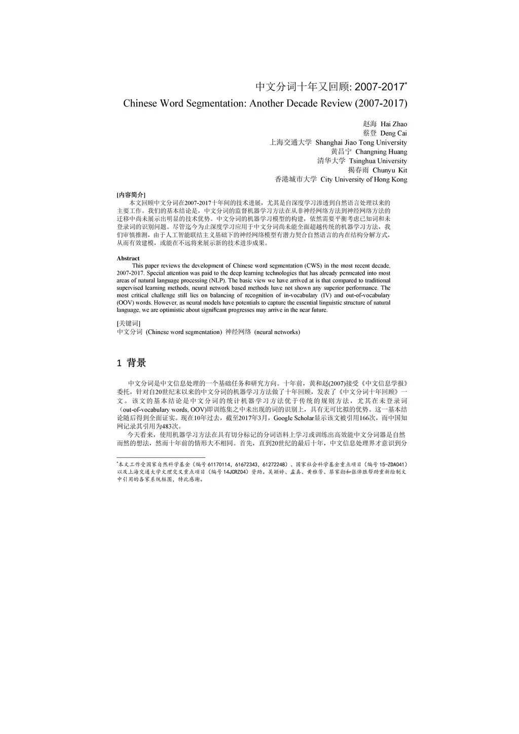 Chinese Word Segmentation: Another Decade Review (2007-2017)