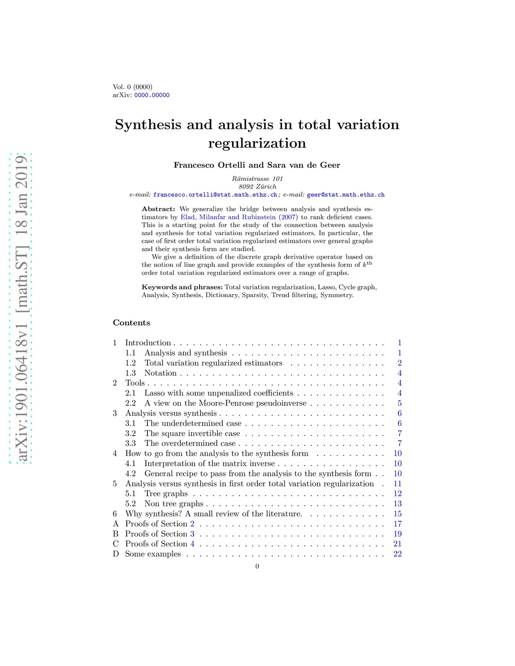 We generalize the bridge between analysis and synthesis estimators by Elad, Milanfar and Rubinstein (2007) to rank deficient cases. This is a starting point for the study of the connection between analysis and synthesis for total variation regularized estimators. In particular, the case of first order total variation regularized estimators over general graphs and their synthesis form are studied. We give a definition of the discrete graph derivative operator based on the notion of line graph and provide examples of the synthesis form of order total variation regularized estimators over a range of graphs.