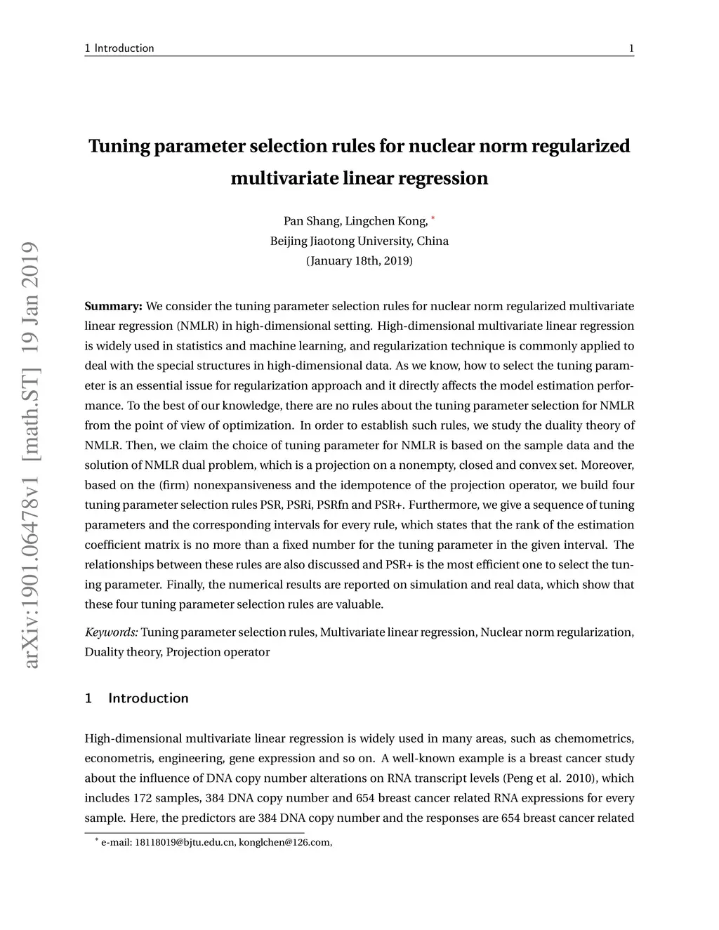 We consider the tuning parameter selection rules for nuclear norm regularized multivariate linear regression (NMLR) in high-dimensional setting. High-dimensional multivariate linear regression is widely used in statistics and machine learning, and regularization technique is commonly applied to deal with the special structures in high-dimensional data. As we know, how to select the tuning parameter is an essential issue for regularization approach and it directly affects the model estimation performance. To the best of our knowledge, there are no rules about the tuning parameter selection for NMLR from the point of view of optimization. In order to establish such rules, we study the duality theory of NMLR. Then, we claim the choice of tuning parameter for NMLR is based on the sample data and the solution of NMLR dual problem, which is a projection on a nonempty, closed and convex set. Moreover, based on the (firm) nonexpansiveness and the idempotence of the projection operator, we build four tuning parameter selection rules PSR, PSRi, PSRfn and PSR+. Furthermore, we give a sequence of tuning parameters and the corresponding intervals for every rule, which states that the rank of the estimation coefficient matrix is no more than a fixed number for the tuning parameter in the given interval. The relationships between these rules are also discussed and PSR+ is the most efficient one to select the tuning parameter. Finally, the numerical results are reported on simulation and real data, which show that these four tuning parameter selection rules are valuable.