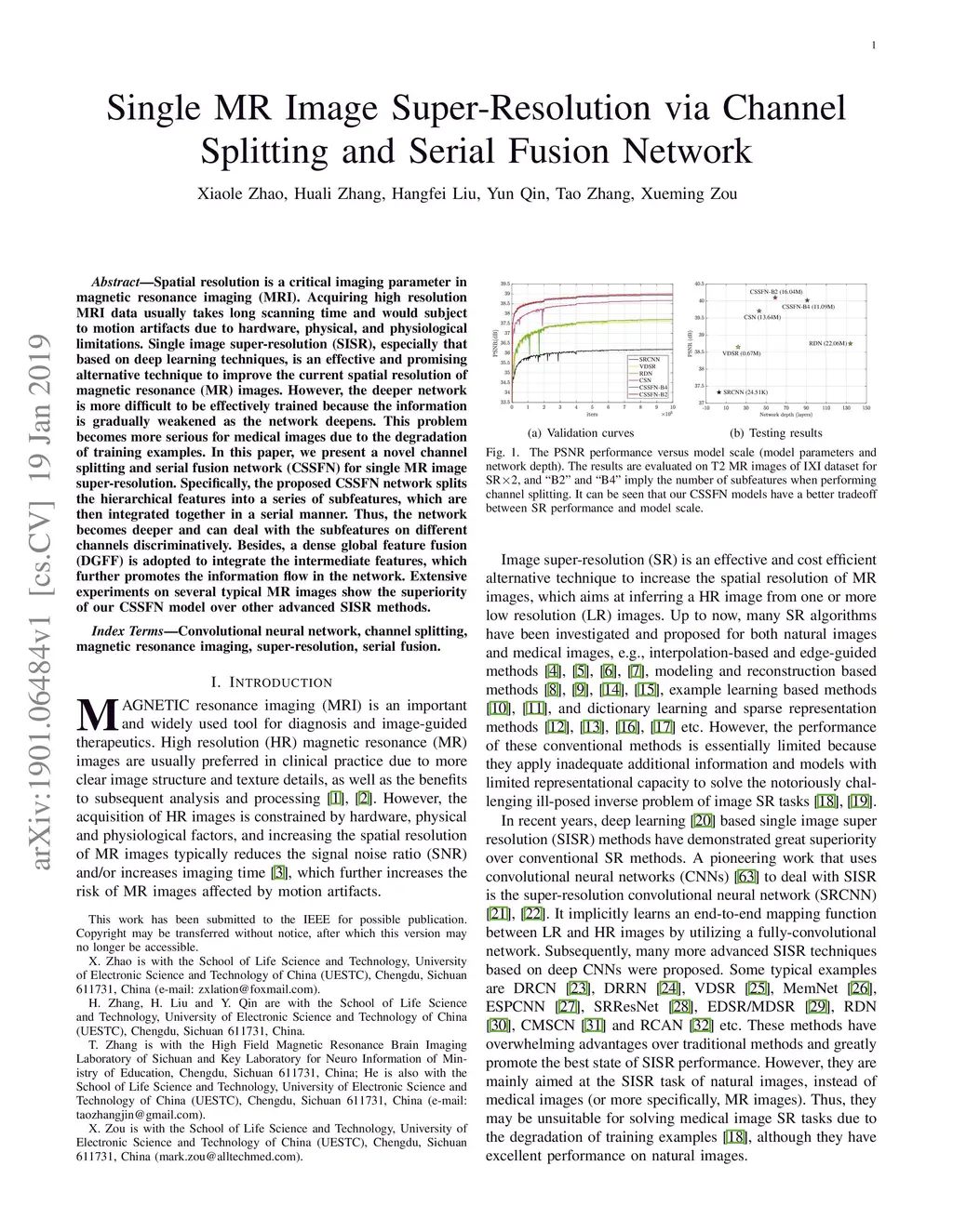 Single MR Image Super-Resolution via Channel Splitting and Serial Fusion