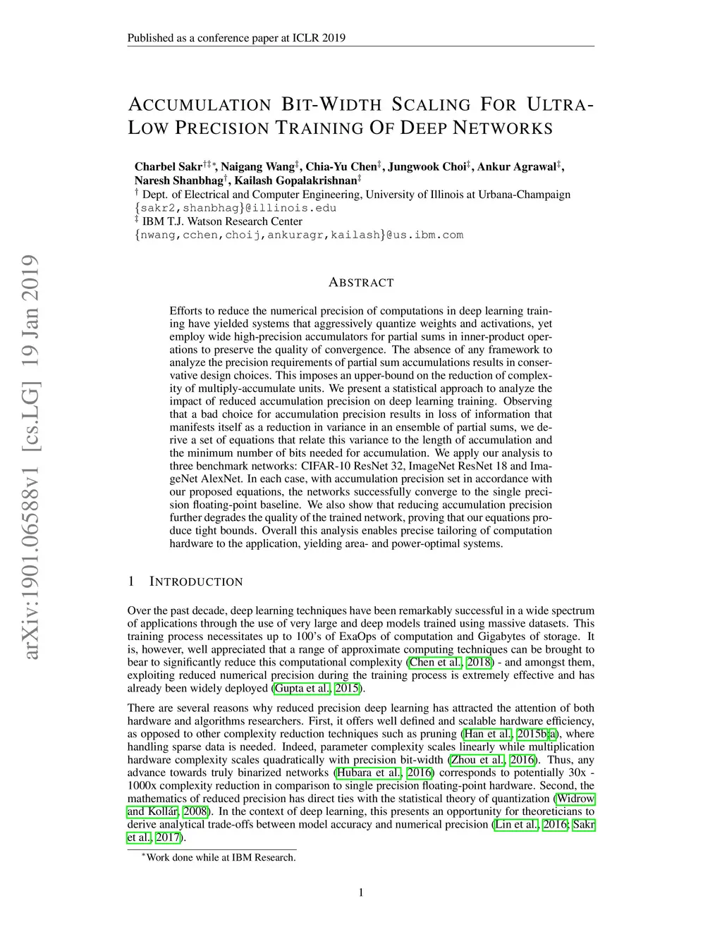 Accumulation Bit-Width Scaling For Ultra-Low Precision Training Of Deep