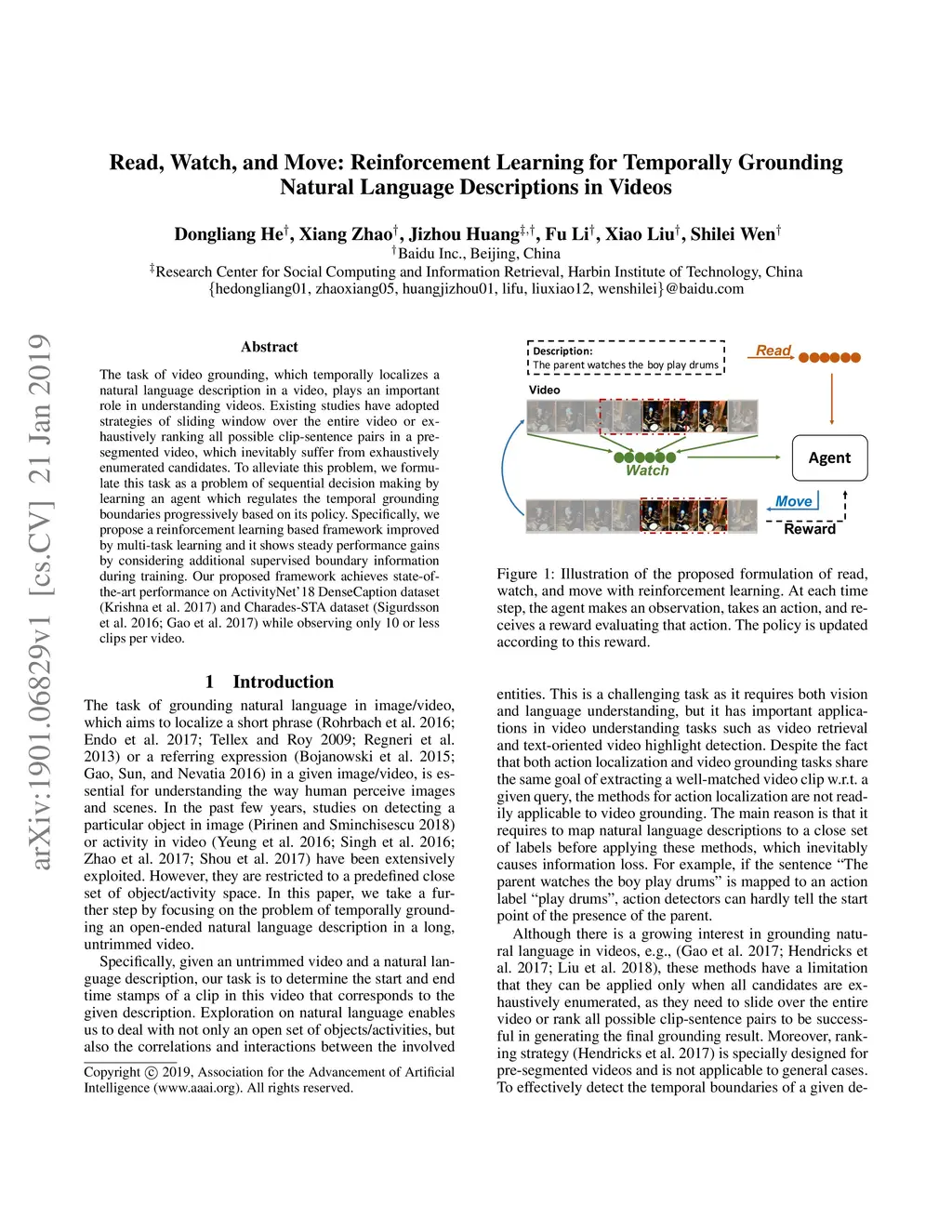Read, Watch, and Move: Reinforcement Learning for Temporally Grounding
