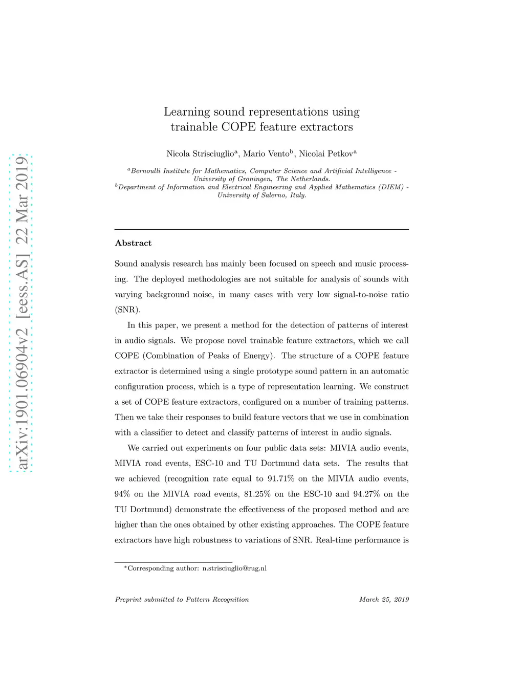 Learning sound representations using trainable COPE feature extractors