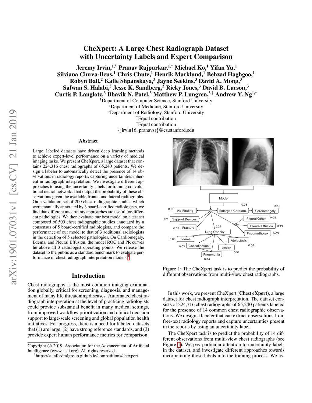 CheXpert: A Large Chest Radiograph Dataset with Uncertainty Labels and