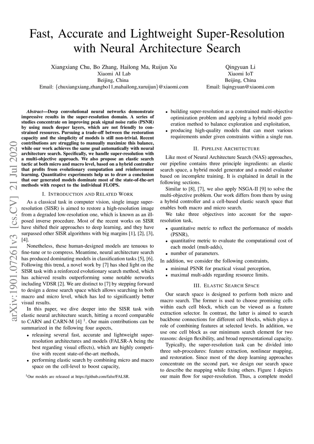 Fast, Accurate and Lightweight Super-Resolution with Neural Architecture