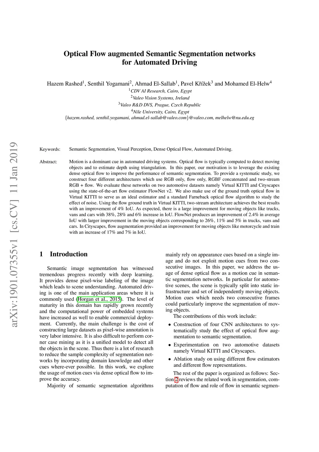 Optical Flow augmented Semantic Segmentation networks for Automated