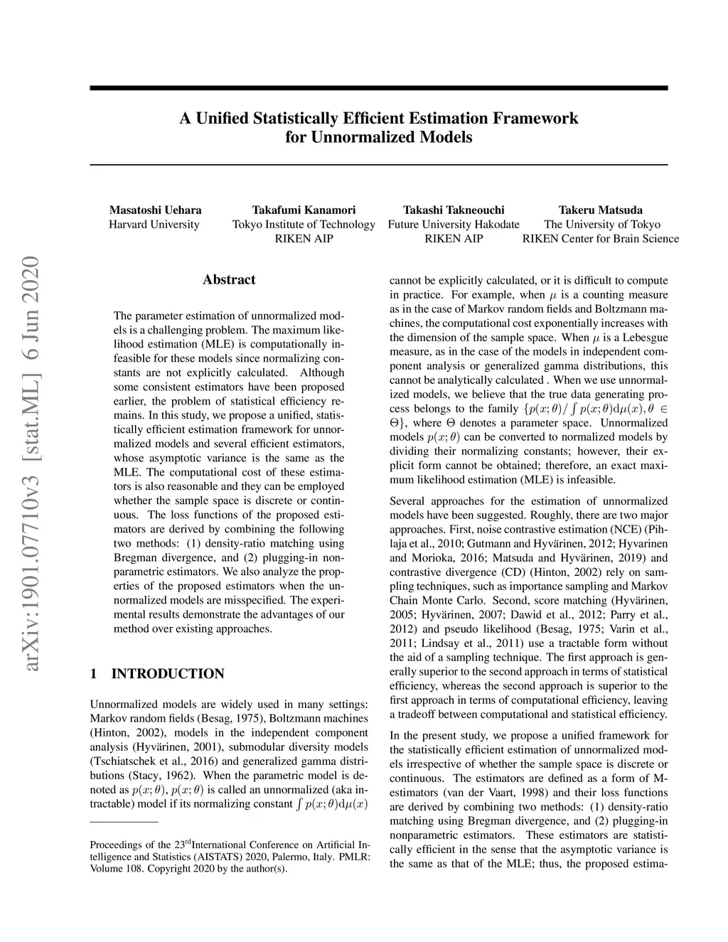 The parameter estimation of unnormalized models is a challenging problem. The maximum likelihood estimation (MLE) is computationally infeasible for these models since normalizing constants are not explicitly calculated. Although some consistent estimators have been proposed earlier, the problem of statistical efficiency remains. In this study, we propose a unified, statistically efficient estimation framework for unnormalized models and several efficient estimators, whose asymptotic variance is the same as the MLE. The computational cost of these estimators is also reasonable and they can be employed whether the sample space is discrete or continuous. The loss functions of the proposed estimators are derived by combining the following two methods: (1) density-ratio matching using Bregman divergence, and (2) plugging-in nonparametric estimators. We also analyze the properties of the proposed estimators when the unnormalized models are misspecified. The experimental results demonstrate the advantages of our method over existing approaches.