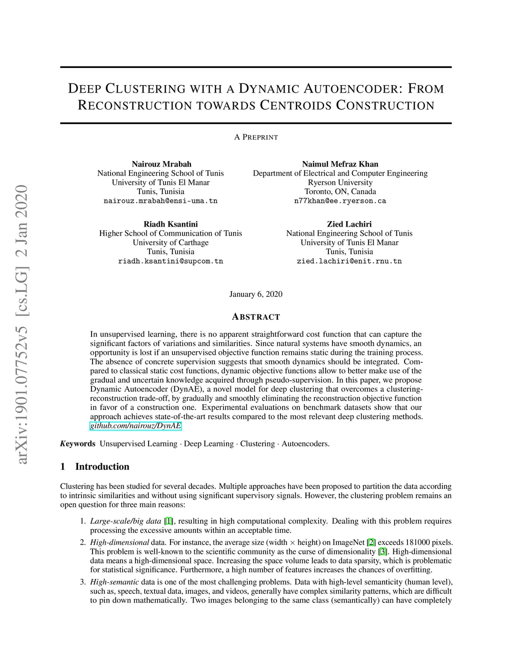 Deep Clustering with a Dynamic Autoencoder: From Reconstruction towards