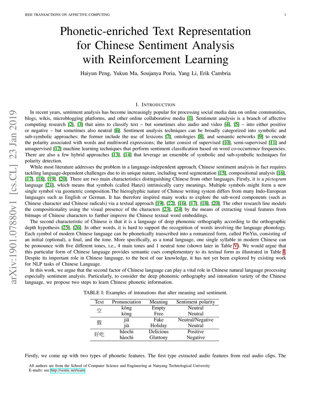 The Chinese pronunciation system offers two characteristics that distinguish it from other languages: deep phonemic orthography and intonation variations. We are the first to argue that these two important properties can play a major role in Chinese sentiment analysis. Particularly, we propose two effective features to encode phonetic information. Next, we develop a Disambiguate Intonation for Sentiment Analysis (DISA) network using a reinforcement network. It functions as disambiguating intonations for each Chinese character (pinyin). Thus, a precise phonetic representation of Chinese is learned. Furthermore, we also fuse phonetic features with textual and visual features in order to mimic the way humans read and understand Chinese text. Experimental results on five different Chinese sentiment analysis datasets show that the inclusion of phonetic features significantly and consistently improves the performance of textual and visual representations and outshines the state-of-the-art Chinese character level representations.