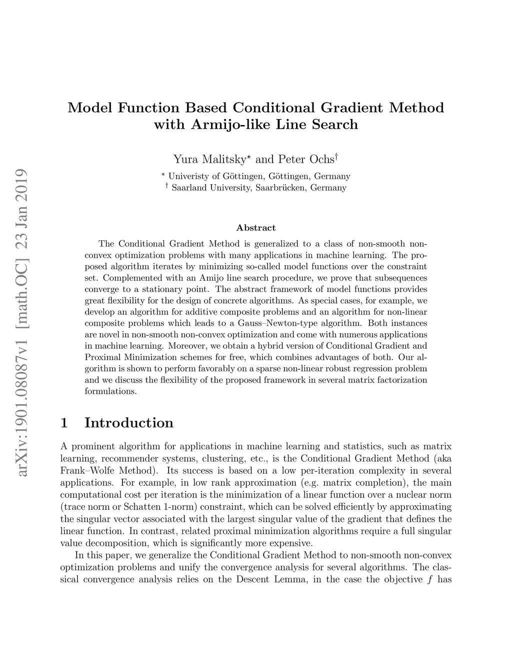 Model Function Based Conditional Gradient Method with Armijo-like Line