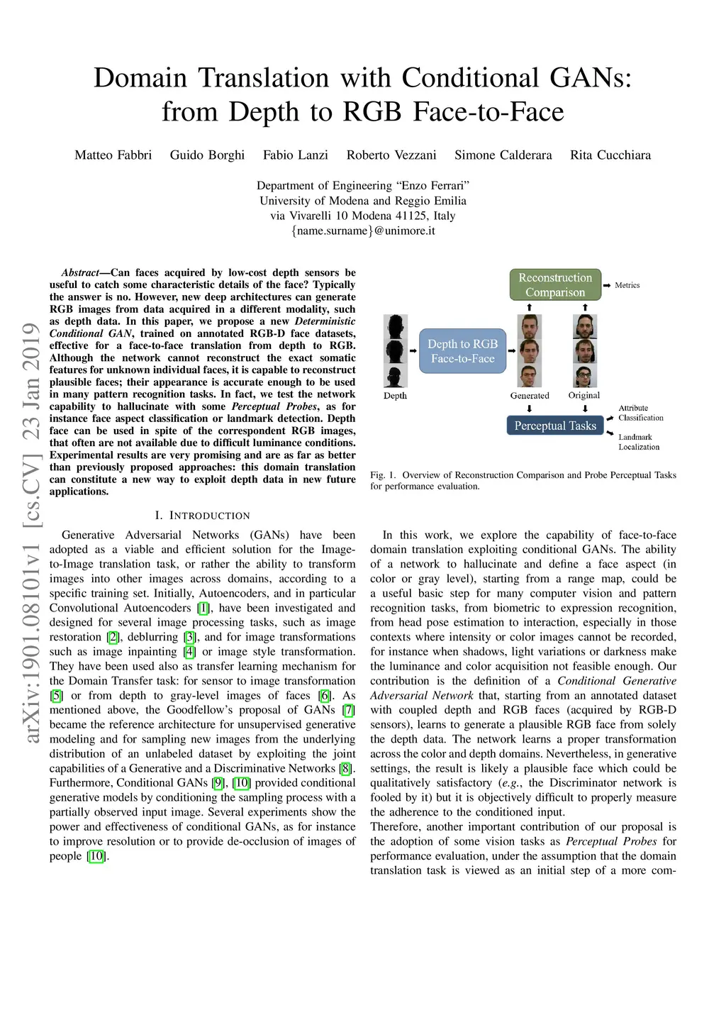 Domain Translation with Conditional GANs: from Depth to RGB Face-to-Face