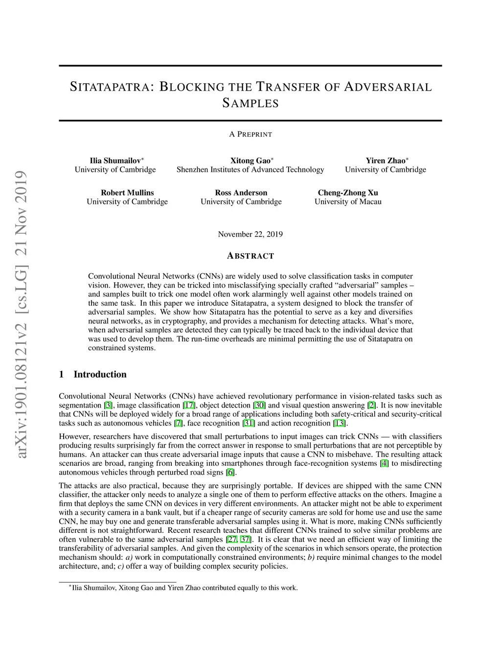 Sitatapatra: Blocking the Transfer of Adversarial Samples