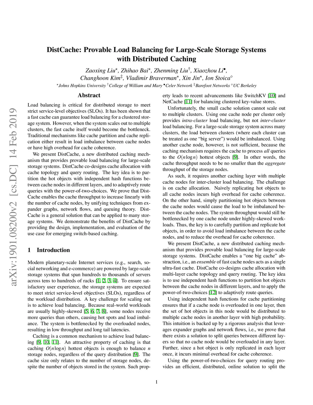 DistCache: Provable Load Balancing for Large-Scale Storage Systems with