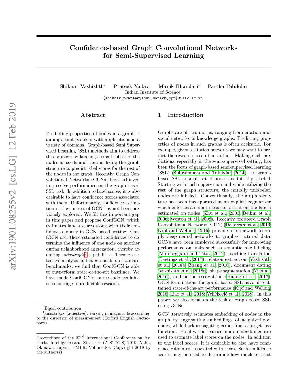 Confidence-based Graph Convolutional Networks for Semi-Supervised