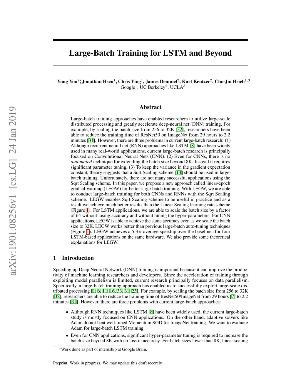 Large-Batch Training for LSTM and Beyond