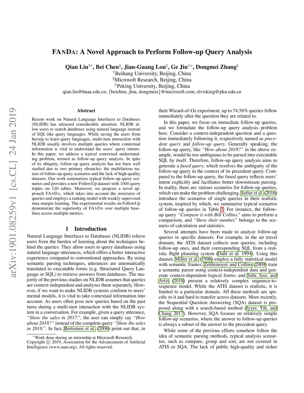 FANDA: A Novel Approach to Perform Follow-up Query Analysis