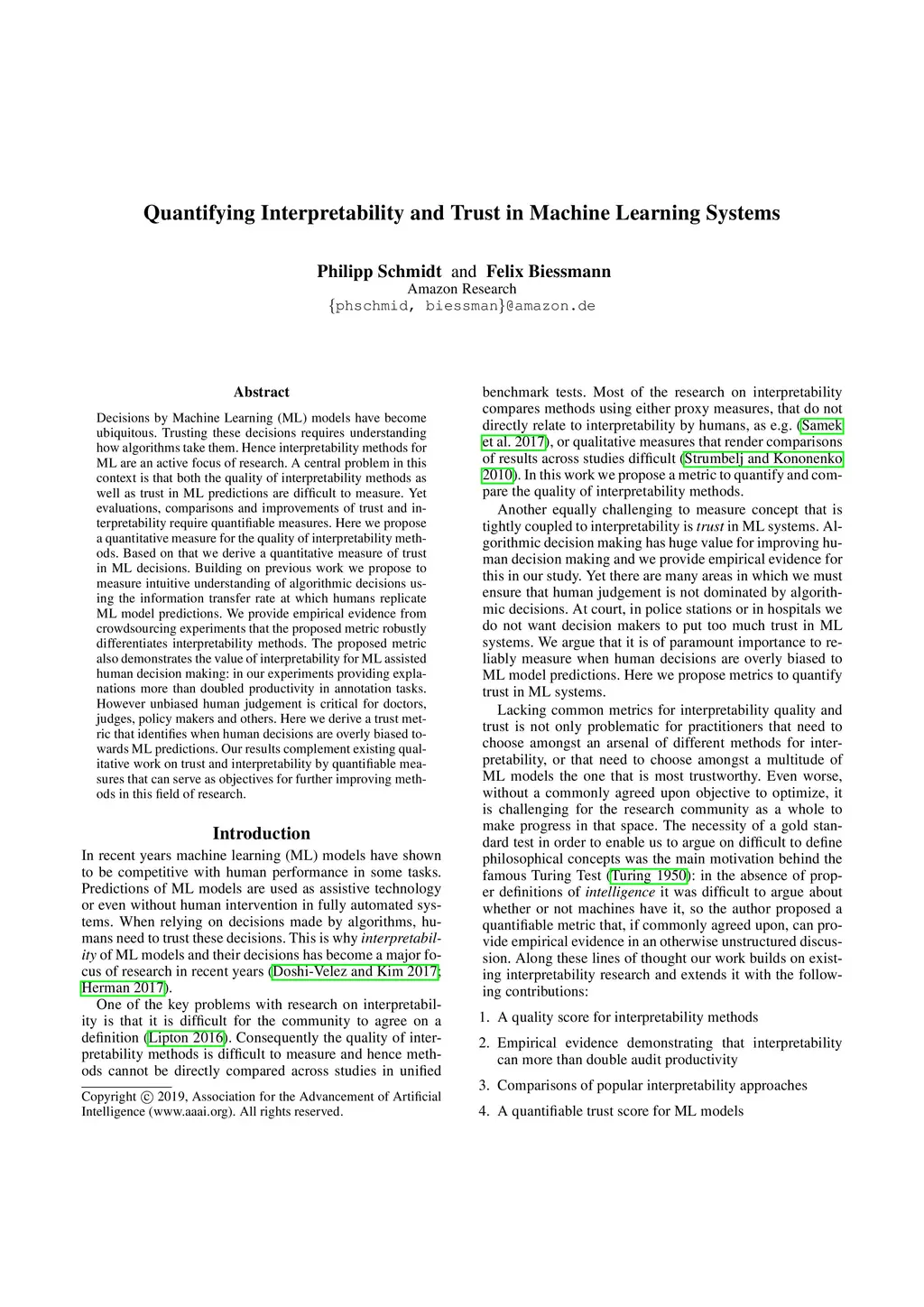 Quantifying Interpretability and Trust in Machine Learning Systems