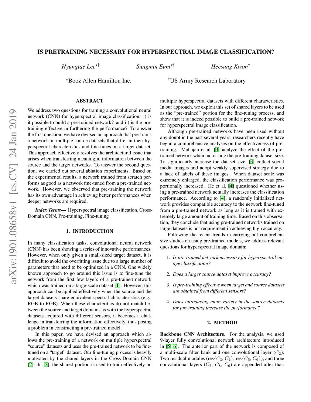 We address two questions for training a convolutional neural network (CNN) for hyperspectral image classification: i) is it possible to build a pre-trained network? and ii) is the pre-training effective in furthering the performance? To answer the first question, we have devised an approach that pre-trains a network on multiple source datasets that differ in their hyperspectral characteristics and fine-tunes on a target dataset. This approach effectively resolves the architectural issue that arises when transferring meaningful information between the source and the target networks. To answer the second question, we carried out several ablation experiments. Based on the experimental results, a network trained from scratch performs as good as a network fine-tuned from a pre-trained network. However, we observed that pre-training the network has its own advantage in achieving better performances when deeper networks are required.