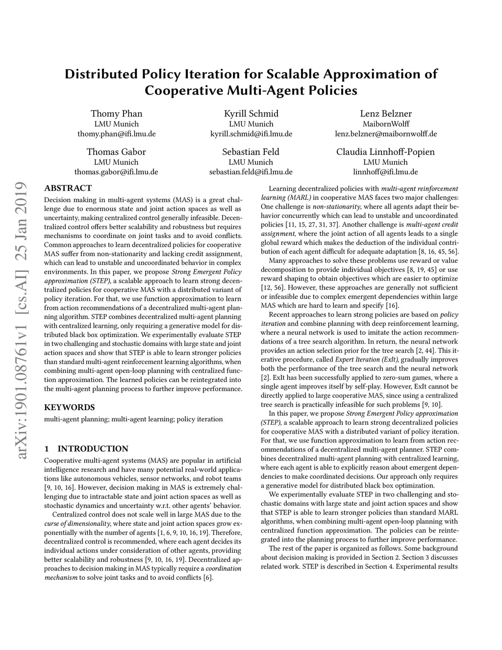 Decision making in multi-agent systems (MAS) is a great challenge due to enormous state and joint action spaces as well as uncertainty, making centralized control generally infeasible. Decentralized control offers better scalability and robustness but requires mechanisms to coordinate on joint tasks and to avoid conflicts. Common approaches to learn decentralized policies for cooperative MAS suffer from non-stationarity and lacking credit assignment, which can lead to unstable and uncoordinated behavior in complex environments. In this paper, we propose Strong Emergent Policy approximation (STEP), a scalable approach to learn strong decentralized policies for cooperative MAS with a distributed variant of policy iteration. For that, we use function approximation to learn from action recommendations of a decentralized multi-agent planning algorithm. STEP combines decentralized multi-agent planning with centralized learning, only requiring a generative model for distributed black box optimization. We experimentally evaluate STEP in two challenging and stochastic domains with large state and joint action spaces and show that STEP is able to learn stronger policies than standard multi-agent reinforcement learning algorithms, when combining multi-agent open-loop planning with centralized function approximation. The learned policies can be reintegrated into the multi-agent planning process to further improve performance.